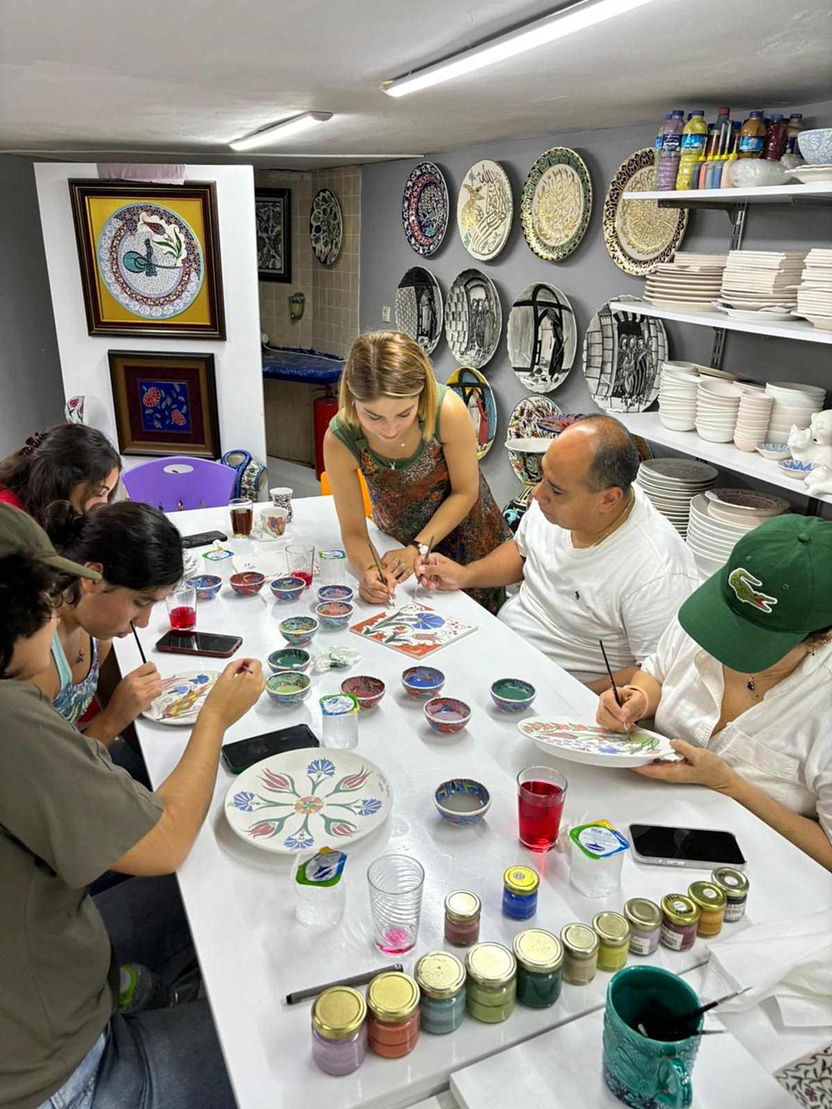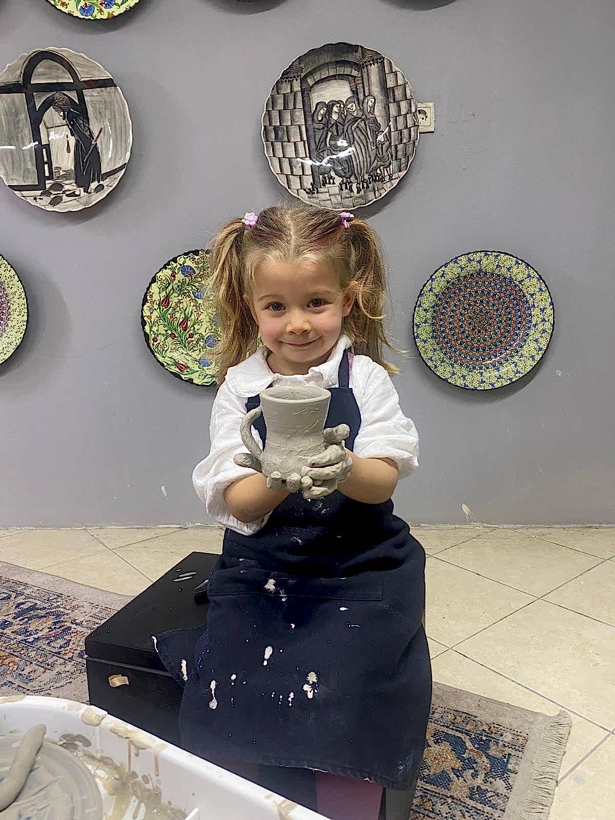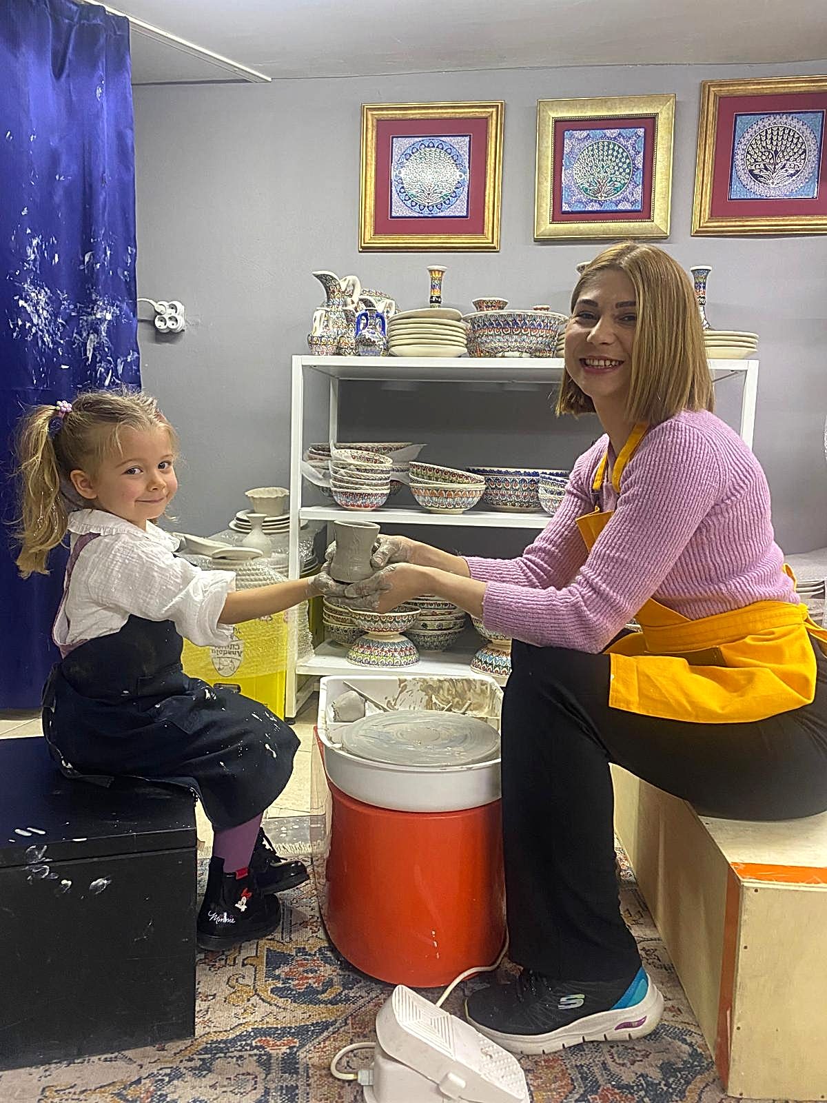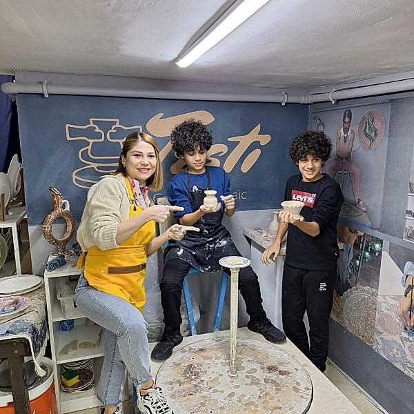 A) 2 saatlik etkinliğimizde, kendi tabağınızı veya karo nuzu tasarlamayı seçebilir veya önceden çizilmiş bir tasarımı seçip canlı renklerle hayata geçirebilirsiniz. İşiniz bittiğinde, şaheserinizi ozel verniklenip, size teslim edeceğiz. Ayrıca, bir çömlekçi çarkında kili şekillendirmeyi deneyebilirsiniz!