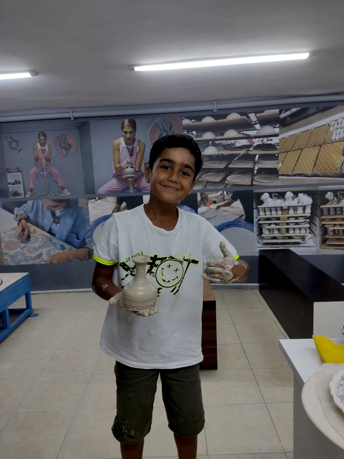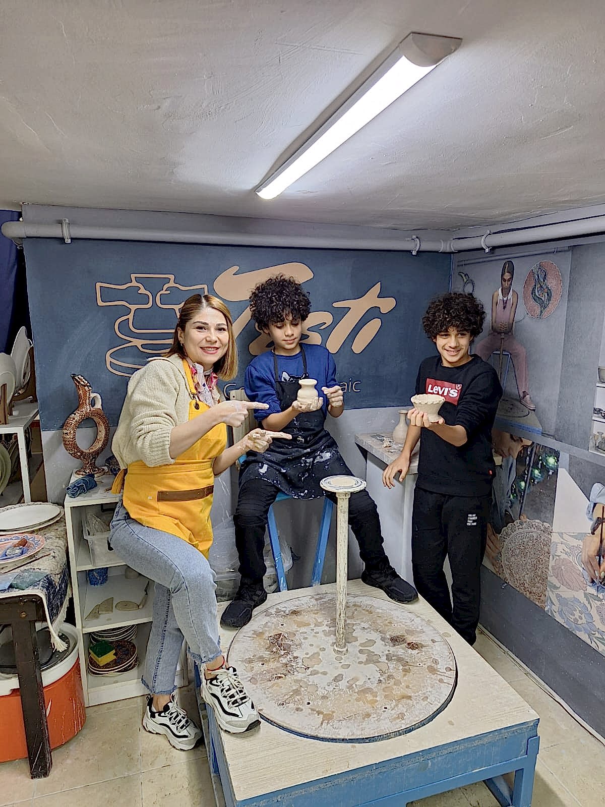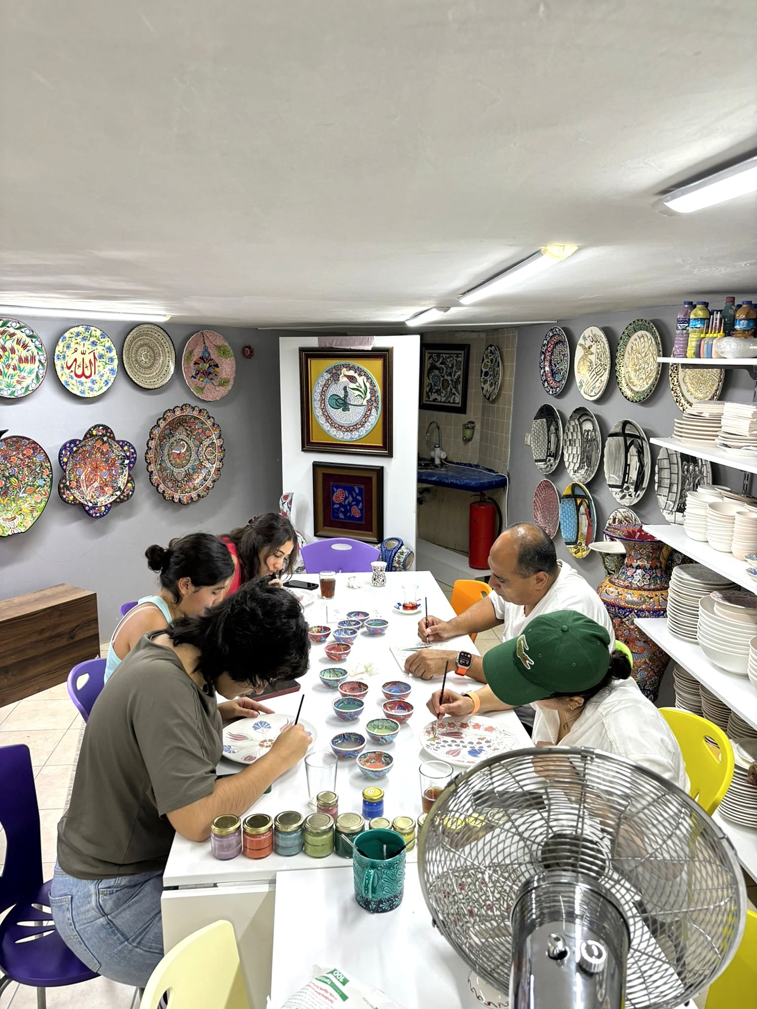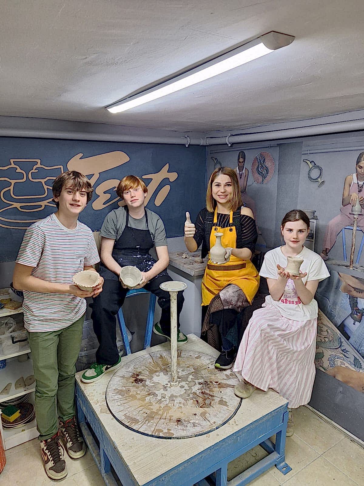 A) 2 saatlik etkinliğimizde, kendi tabağınızı veya karo nuzu tasarlamayı seçebilir veya önceden çizilmiş bir tasarımı seçip canlı renklerle hayata geçirebilirsiniz. İşiniz bittiğinde, şaheserinizi ozel verniklenip, size teslim edeceğiz. Ayrıca, bir çömlekçi çarkında kili şekillendirmeyi deneyebilirsiniz!