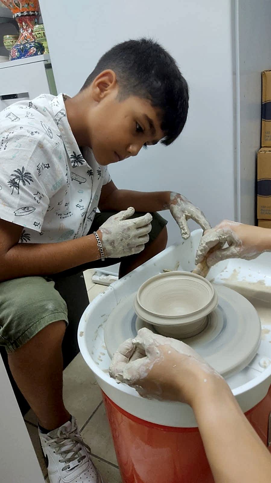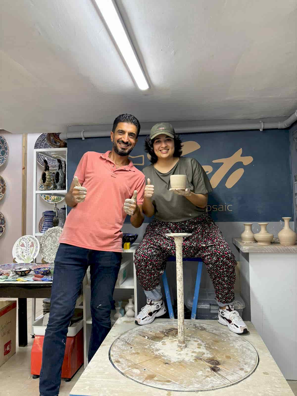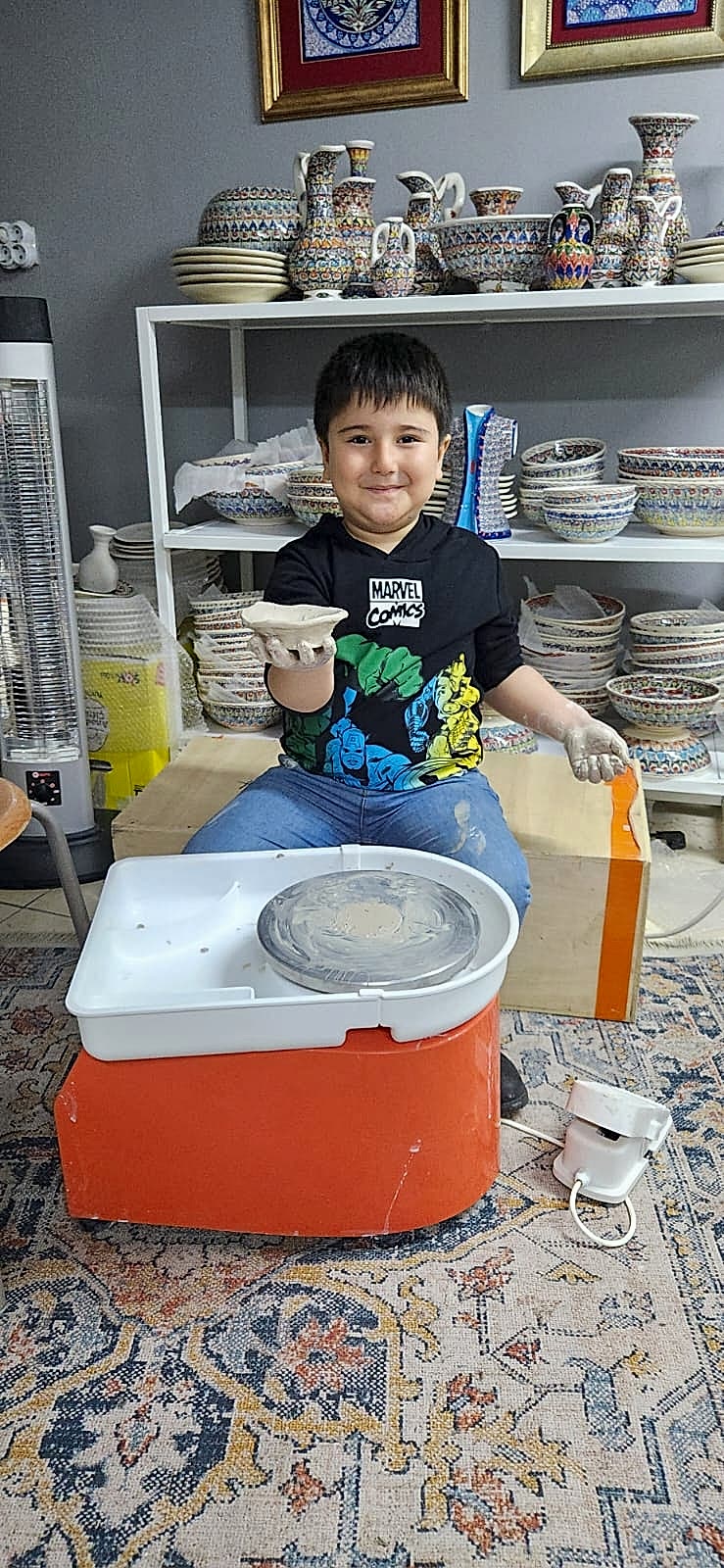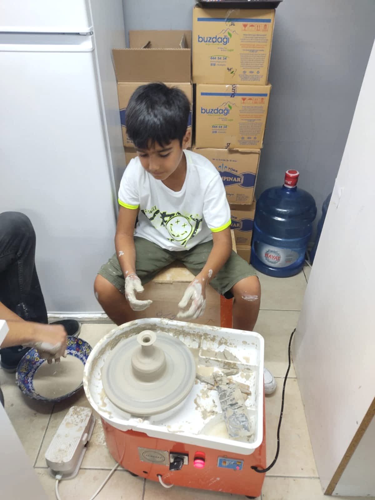 A) 2 saatlik etkinliğimizde, kendi tabağınızı veya karo nuzu tasarlamayı seçebilir veya önceden çizilmiş bir tasarımı seçip canlı renklerle hayata geçirebilirsiniz. İşiniz bittiğinde, şaheserinizi ozel verniklenip, size teslim edeceğiz. Ayrıca, bir çömlekçi çarkında kili şekillendirmeyi deneyebilirsiniz!